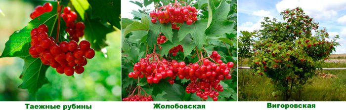następujące odmiany kaliny owocowej są również popularne: Ulgen, słodki Ural, SOS, Jarzębina, Zachód słońca, Zarnica, czerwona kiść itp.