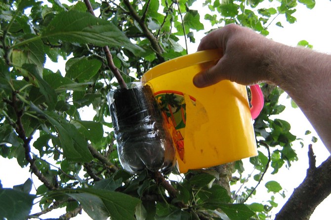 z reguły, aby uzyskać warstwy, musisz zgiąć gałąź do powierzchni gleby, ale nie będzie to możliwe z gruszką. Jest jednak jeden sposób. Aby to zrobić, musisz wypełnić pudełko ziemią odżywczą, w której ściany są wstępnie pokryte folią, co pozwala spowolnić proces odparowywania wody z gleby. Należy go umieścić pod wybraną gałęzią. Gałąź musi być zgięta do pojemnika, w miejscu jej kontaktu z glebą na powierzchni kory należy wykonać kilka poprzecznie rozmieszczonych nacięć. Następnie gałąź jest zamocowana w tej pozycji, a miejsce jej połączenia z powierzchnią ziemi w pudełku musi być pokryte ziemią. Aby korzenie warstw pojawiły się szybciej, wykonane cięcia należy sproszkować środkiem stymulującym wzrost korzeni, a następnie gałąź jest już wykopana. I możesz po prostu podlać warstwy, zamiast wody za pomocą roztworu Kornevin. Następnie powierzchnię gleby w pojemniku należy przykryć folią, pokryciem dachowym lub wypełnić warstwą ściółki (kompostem). Upewnij się, że gleba jest zawsze nieco wilgotna. Warstwy zakorzenią się dopiero pod koniec sezonu, ale należy poczekać na przeszczep, ponieważ w tym czasie system korzeniowy rośliny jest nadal bardzo słaby. Gałąź na zimę należy przykryć świerkowymi gałęziami, a następnie grubą warstwę śniegu należy rzucić na pojemnik z warstwami. Konieczne jest wyhodowanie warstw w ciągu dwóch lat, a następnie oddzielenie go od rośliny macierzystej i przeszczep na stałe miejsce wraz z bryłą ziemi. Konieczne jest sadzenie warstw w taki sam sposób, jak prosta sadzonka. Drzewo wyhodowane z warstw zaczyna kwitnąć i produkować owoce nieco wcześniej niż to, co pochodzi ze zwykłej sadzonki. Ta metoda rozmnażania jest bardzo prosta, a zaletą jest to, że takie sadzonki są w stanie zachować absolutnie wszystkie cechy odmianowe drzewa macierzystego.