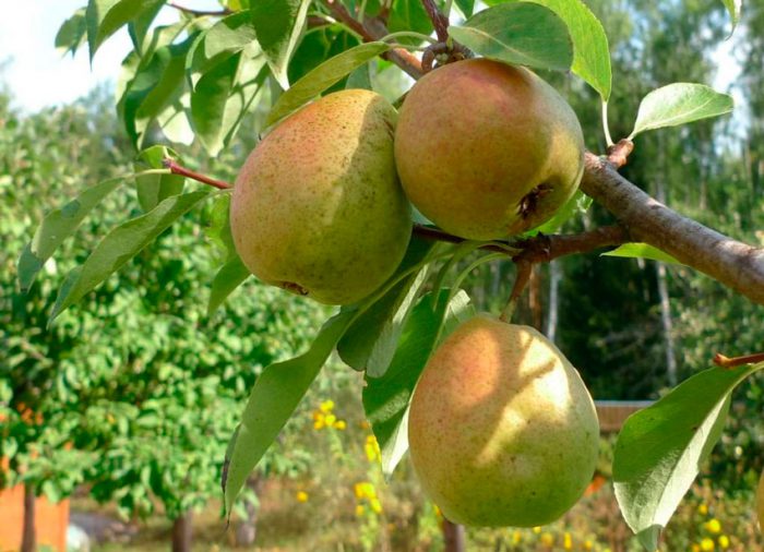 - wczesne lato . Kształt korony tej średniej wielkości gruszki jest szeroko piramidalny, gałęzie są proste. Zielono-żółte owoce mają mały rumieniec o różowym kolorze, ważą około 120 gramów. Słodko-kwaśny delikatny miąższ ma biały kolor. Owoce nie kruszą się z gałęzi przez długi czas, ale jednocześnie można je przechowywać nie dłużej niż 1,5 tygodnia.