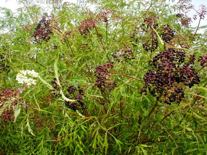 - rozcięta . Ta odmiana czarnego bzu jest najbardziej popularna wśród ogrodników. Duże płytki liściowe otwierają się bardzo wcześnie, składają się z 2 lub 3 par drobno rozciętych liści.