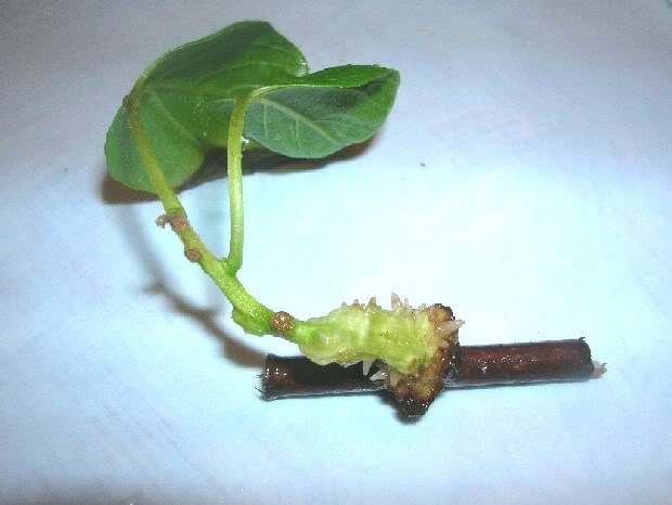 połączone sadzonki nadają się również do ukorzeniania. W pierwszych tygodniach letnich konieczne będzie odcięcie rosnącej łodygi bieżącego roku piętą (częścią przylegającej do niej rocznej gałęzi). Sadzenie takich sadzonek należy wykonać w szklarni lub na łóżku w ogrodzie. Muszą być chronione przed bezpośrednimi promieniami słońca i zapewniać im codzienne podlewanie. W tego rodzaju sadzonkach ukorzenienie jest dość szybkie, w związku z tym w przyszłym roku można je sadzić w stałym miejscu.