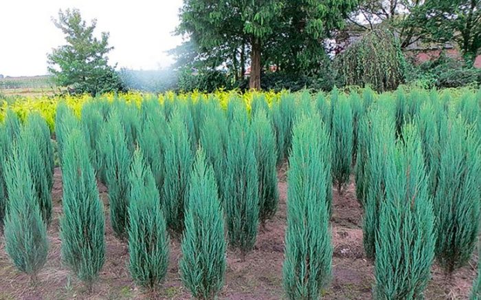 - Blue Erow . Wysokość krzewu waha się od 150 do 250 centymetrów, Korona kolumnowa jest wąska, jej szerokość wynosi około 0,5 metra. Igły łuskowate zielono-niebieskie igły mają stalowy połysk.