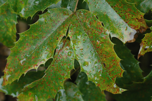 aby wyleczyć magonię z rdzy, należy ją spryskać fungicydami, takimi jak: Abiga Peak, Oxyhom, Cineb, Baileton itp.