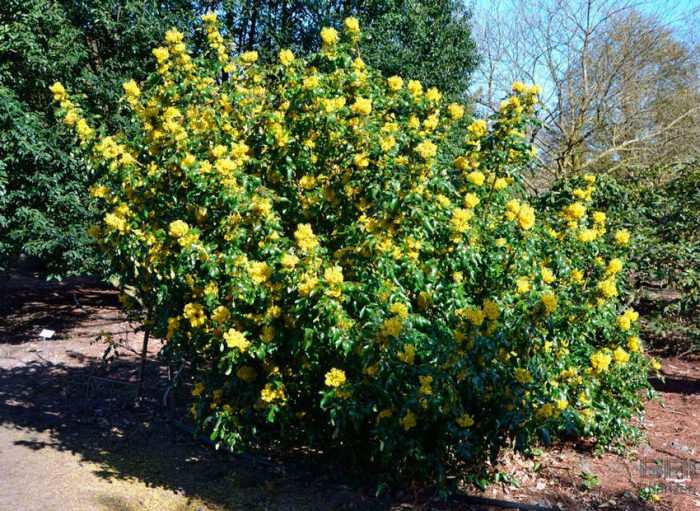 roślina Mahonia (Mahonia) jest reprezentowana przez krzewy i drzewa i należy do rodziny berberysów. Magonia na wolności można znaleźć we wschodnich i środkowych regionach Azji, a także w Ameryce Północnej. Rodzaj ten został nazwany na cześć amerykańskiego ogrodnika z Irlandii Bernarda McMahona, zajmował się tym, że na wschodzie Stanów Zjednoczonych aklimatyzował rośliny, które przywiózł z zachodniej części kraju. Zasłynął również z tego, że jako pierwszy stworzył Amerykański kalendarz ogrodowy. Rodzaj ten łączy około 50 gatunków. Ostrokrzew Mahonia jest gatunkiem typowym tego rodzaju, tam, skąd pochodzi, jest również nazywany "winogronem oregońskim". Taka roślina kochająca cień ma wysoką odporność na mróz i suszę, a także jest mało wymagająca dla gleby.