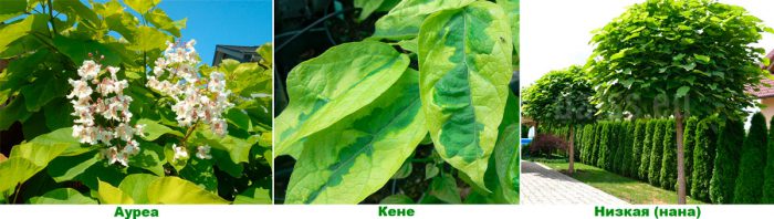 w ogrodach i domkach najczęściej rośnie wspaniała i bignoniform Catalpa. Taka roślina stanowi jasny akcent ogólnego krajobrazu. Aby zwiększyć dekoracyjność tego drzewa, zaleca się sadzenie go obok liściastych magnolii lub dębów. Aby ozdobić mały ogród lub działkę domową, eksperci zalecają stosowanie niezbyt wysokich odmian takiej rośliny, na przykład Nana.