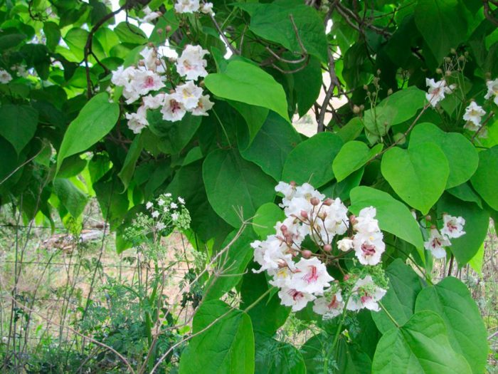 na wolności można go spotkać w Ameryce Północnej, gatunek ten woli rosnąć na brzegach rzek. Wysokość takiej rośliny może osiągnąć 20 metrów. Rozłożysta Korona ma szeroko Okrągły kształt. Kolor cienkowarstwowej kory jest jasnobrązowy. W takim drzewie płytki liściowe o jasnozielonym kolorze zasługują na szczególną uwagę, na zewnątrz są bardzo podobne do liści bzu, ale są większe. Ich długość dochodzi do 20 centymetrów, a szerokość do 15 centymetrów. Ich przednia powierzchnia jest naga, a zła — Owłosiona wzdłuż żył. Jeśli zmielisz taki liść, możesz poczuć niezbyt przyjemny zapach. Długość pachnących białych kwiatów wynosi około 5 centymetrów, w gardle mają dwa żółte paski, a na powierzchni znajduje się brązowawo-czerwony krap. Są częścią luźnych kwiatostanów w kształcie piramidy, które osiągają szerokość 20 centymetrów i długość 30 centymetrów. Czas kwitnienia wynosi około 20 dni. Owoc jest wąskim, długim (około 40 centymetrów) pudełkiem w kształcie strąka, wewnątrz znajdują się małe nasiona. Uprawiana od 1726 r. formy dekoracyjne: