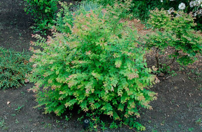 w pobliżu krzewu rośnie wiele potomstwa korzeniowego, tworzą duże i dość gęste zasłony. Dlatego ta roślina może aktywnie rosnąć i przemieszczać się z miejsca sadzenia. Wykop kurtynę, którą lubisz i posadź w stałym miejscu. Nawiasem mówiąc, pomoże to zapobiec pogrubieniu krzewu.