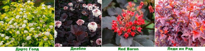 - Red Baron . Wysokość krzewu wynosi około 200 centymetrów. Nagie owalne trzy-pięciopłatkowe płytki liściowe osiągają 7 centymetrów długości i mają ząbkowaną krawędź. Są pomalowane na spektakularny ciemnoczerwony kolor i są węższe w porównaniu do pęcherzyka Diablo. Kwiatostany w kształcie parasola składają się z białych z różowym odcieniem kwiatów, osiągających średnicę 5 centymetrów. Owoce koloru czerwonego również wyglądają imponująco, w tym od 3 do 5 spiczastych torebek. Ta odmiana należy do najcenniejszych.