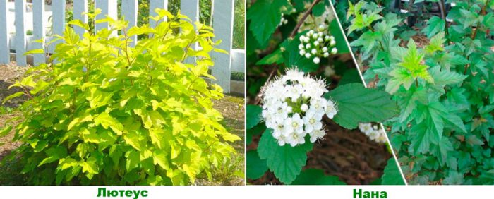 - Rzutki Gold . Wysokość gęstego i szerokiego krzewu może osiągnąć 150 centymetrów. Żółte płytki liściowe zmieniają kolor na zielonkawo-żółty Latem. Kwiatostany racemose składają się z białych lub różowych kwiatów.