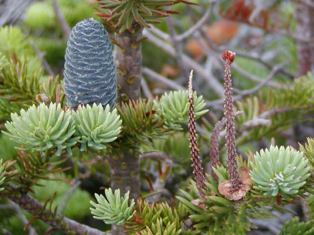 - Blue Standard . Różni się od pierwotnego gatunku tylko ciemnofioletowym kolorem szyszek.
