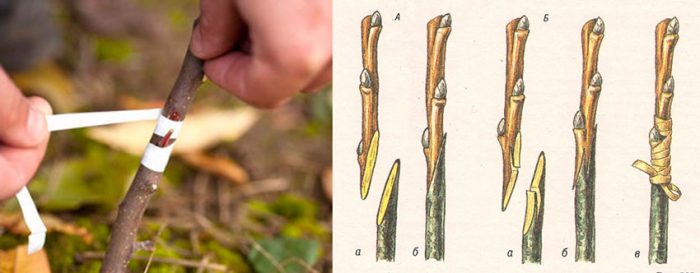 ten krzew można rozmnażać przez szczepienie tylko wtedy, gdy obserwuje się przepływ soku, a mianowicie: wiosną lub w sierpniu. Podkładkę, która powinna rosnąć na otwartym terenie, należy delikatnie przetrzeć zwilżoną szmatką, usuwając z niej kurz i brud. Następnie nieco powyżej szyi korzenia należy wykonać nacięcie w kształcie litery T za pomocą noża pączkującego. A następnie ostrożnie odkręć naciętą korę na boki. Z zrazu należy odciąć tarczę, która jest paskiem kory z nerką i cienką warstwą drewna. Należy zauważyć, że osłona powinna całkowicie zmieścić się w wcześniej wykonanym cięciu w kształcie litery T, więc nie musisz jej zbyt długo. Po włożeniu osłony należy docisnąć krawędzie kory, które zostały wcześniej odwrócone. Aby naprawić osłonę, możesz użyć taśmy pączkującej, taśmy klejącej lub łatki, a wystarczy zrobić tylko kilka zwojów wokół beczki. Pamiętaj, że nerka z resztą ogonka nie powinna być zamknięta.