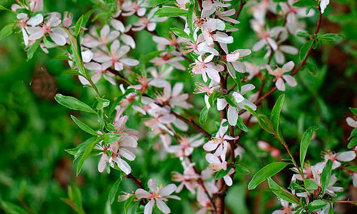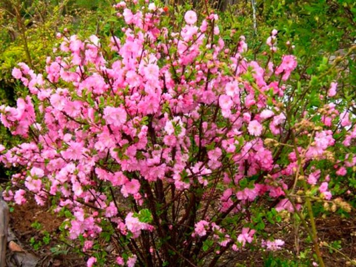 wysokość tego krzewu liściastego może osiągnąć 150 centymetrów. Jego bujna korona ma kulisty kształt, kora na wyprostowanych gałęziach jest szaro-czerwonawa. Długość skórzastych wąskich blaszek liściowych w kształcie lancetowatym wynosi około 6 centymetrów. Ich przednia powierzchnia jest ciemnozielona, a niewłaściwa powierzchnia jest jasnozielona. Pojedyncze kwiaty mają bogaty różowy kolor. Kwitnie 1-1, 5 tygodnia. Owoce takiego krzewu można jeść. Gatunek ten jest bardzo popularny wśród ogrodników na środkowym pasie. Gatunek ten ma 2 formy, a mianowicie białokwiat i Gesslera. Migdały Gesslera mają mniejszy rozmiar w porównaniu do pierwotnego wyglądu, ale jego kwiaty o nasyconym różowym kolorze są nieco większe. Na środkowym pasie najpopularniejsze są następujące odmiany:
