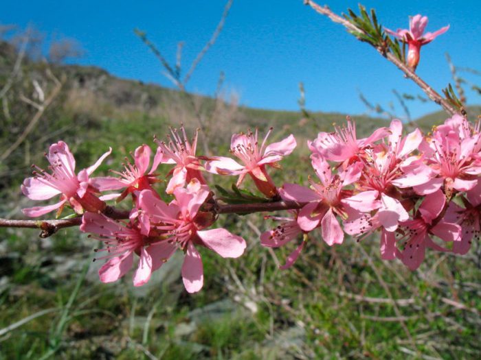 ten kaukaski endem woli rosnąć na krawędziach, słoniach, a także w zagłębieniach. Krzew osiąga wysokość około 100 centymetrów, Na Zewnątrz ma duże podobieństwo do niskiego migdału, ale jego płytki liściowe nie są tak małe i osiągają długość około 8 centymetrów, a szczeciniaste nasycone różowe kwiaty mają większy rozmiar. Gatunek ten jest szczególnie często używany w swojej pracy przez hodowców, a także może być uprawiany w regionie moskiewskim, ponieważ jest dość odporny na mróz.