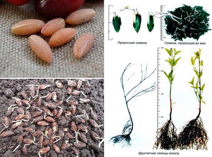 przed siewem wstępnie oczyszczone z miazgi nasiona należy rozwarstwić. Aby to zrobić, umieszcza się je w zwilżonych trocinach lub mchu, gdzie powinny pozostać przez około 12 miesięcy, podczas gdy środowisko jest stale wilgotne. Na liścieniach kość nie rozdziela się, w związku z tym należy ją zakopać w glebie o około 3 centymetry. Jeśli nasiona nie zostaną rozwarstwione, sadzonki pojawią się dopiero za kilka lat, a tylko niewielka część nasion wykiełkuje. Jeśli wysiejesz stratyfikowane nasiona, sadzonki można zobaczyć w tym samym roku. Należy dbać o uprawy i sadzonki jak zwykle, a raczej podlewać, karmić, chwastować w odpowiednim czasie, podczas gdy na początku będą potrzebować ochrony przed bezpośrednim działaniem promieni słonecznych. Pod koniec pierwszego roku sadzonki osiągną wysokość tylko 30-40 mm, a pod koniec drugiego — ich długość będzie równa 10-15 centymetrów. Jesienią dwuletnie sadzonki można przesadzić na otwartą glebę w szkółce. Pierwsze owoce na takiej roślinie pojawią się dopiero po 7-10 latach.