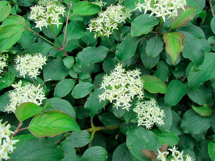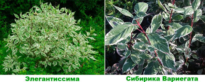 - Elegantissima . Ma bardzo wysoką odporność na mróz i szybko rośnie. Krzew może osiągnąć wysokość trzech metrów, łodygi mają czerwony kolor, który wygląda szczególnie imponująco zimą. Płytki liściowe mają nierówne obramowanie kremowego koloru, a na powierzchni znajdują się paski i plamki.