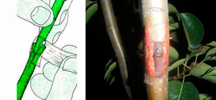 pączkowanie przypada na Sierpień i Wrzesień, w tym celu stosuje się ukorzenione lub posadzone sadzonki dzikiego derenia, które powinny mieć 2 lata. Jako przeszczep biorą odmiany derenia. Uzbrojony w ostry nóż na powierzchni podkładki należy wykonać nacięcie w kształcie krzyża, a głębokość pionowego cięcia powinna wynosić około 30 mm. z zrazu należy wyciąć nerkę kawałkiem kory, ogonkiem blachy i niewielką częścią drewna. Powinien być umieszczony w pionowo umieszczonym nacięciu, podczas gdy kora na nim musi być delikatnie rozłożona w różnych kierunkach. Aby naprawić zraz, należy użyć taśmy pączkującej lub można wziąć prostą taśmę papierniczą. Jeśli wszystko zostało zrobione zgodnie z zasadami, po 15-20 dniach ogonek powinien spaść. W październiku taśma jest usuwana. Następnie musisz usunąć pojawiające się pędy podkładki w odpowiednim czasie.