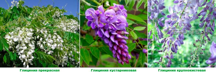 rodzaje i odmiany glicynii ze zdjęciami i nazwami