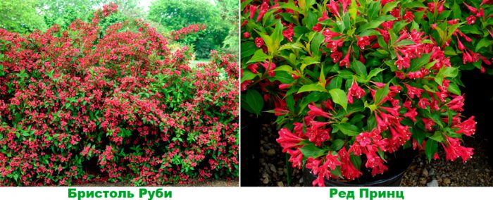 - Bristol Ruby . Odmiana pojawiła się w 1941 r.w USA. Krzew może osiągnąć wysokość 250-300 centymetrów, a średnica jego korony wynosi 350 centymetrów. Liście mają nasycony zielony kolor. Różowe kwiaty mają rubinowoczerwone krawędzie, czasami ich środek jest pomalowany na pomarańczowo. Ta szybko rosnąca roślina zaczyna kwitnąć w ostatnich dniach czerwca.