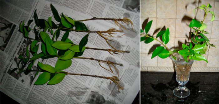 lepiej wybrać sadzonki letnie, ponieważ procent ich ukorzenienia wynosi 90-100%. Cięcie należy wykonać, gdy kwitnienie jest prawie zakończone, podczas gdy wybiera się najbardziej dojrzałe i rozwinięte pędy. Sadzonki powinny osiągnąć długość 10-12 centymetrów. Sadzenie sadzonek odbywa się w glebie darniowej, której powierzchnia musi być pokryta warstwą zmytego grubego piasku. Sadzi się je pod kątem 45 stopni, zakopując 5 centymetrów w podłożu. Najszybciej sadzonki ukorzeniają się w temperaturze od 20 do 25 stopni, a wilgotność jest stała. Aby zapewnić sadzonkom optymalne warunki, na każdym z nich należy umieścić półtoralitrową plastikową butelkę, w której należy odciąć szyję, a na dole zrobić kilka otworów. Pierwsze korzenie wyrosną za pół miesiąca, a po 3 miesiącach rośliny będą już dobrze rozwijać system korzeniowy. Po całkowitym ukorzenieniu sadzonki będą musiały rosnąć przez około rok, a jeśli to konieczne, zostaną przesadzone w pojemnikach o większej objętości. Sadzenie w otwartej glebie można wykonać dopiero po wysokości sadzonek wynoszącej 50-60 centymetrów.