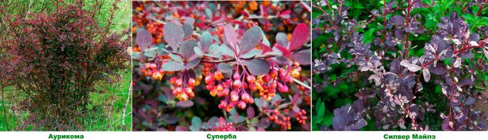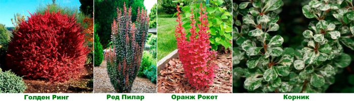 berberysy takie jak: Julian, Beana, Tischler, Morrison, Wilson, zielonkawy, wierzbowy, wielokwiatowy, orientalny, Iberyjski, siatkowaty, podobny, niebiesko-biały, bukszpan, wycięty lub neokaimenny, Gruboziarnisty, Prowincjonalny, wiosenny, ilijski, monetarny, Koreański, tybetański, syberyjski, Przezroczysty, okrągły, skręcony, Amur, turkmeński, całobrzegie, Podłużne, okrągłe, Azjatyckie itp.