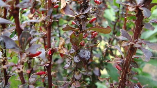 szkodniki takie jak berberysowiec, mszyca berberysowa lub kwiatowa rozpiętość mogą zaszkodzić temu krzewowi. W krzaku zainfekowanym mszycami płytki liściowe zaczynają się marszczyć i wysychać. Rozpiętość stanowi duże zagrożenie dla tych gatunków, które mają jadalne owoce,ponieważ je. Do eksterminacji mszyc stosuje się roztwór mydła do prania (na wiadro wody 300 gramów substancji). Aby zniszczyć gąsienice piły, a także rozpiętość, konieczne jest potraktowanie krzewu 1-3-procentowym roztworem chlorofosu.