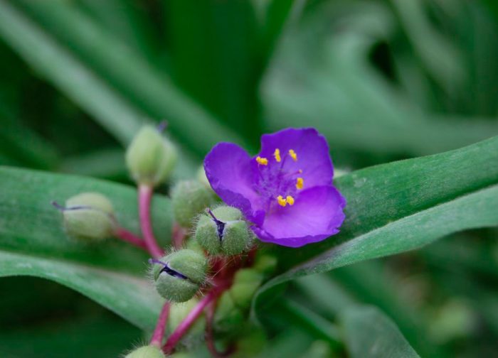 - Kwitnienie . Tradescantia jest uprawiana jako ozdobna roślina liściasta.