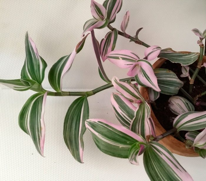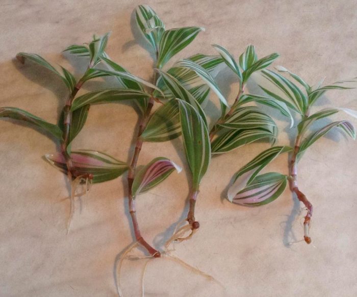 - kwiat jest wyciągany . W okresie zimowym pędy Tradescantia mogą się rozciągać, podczas gdy liście wysychają i krążą u ich podstawy. W tym przypadku ukorzenione sadzonki są używane do odmłodzenia krzewu.