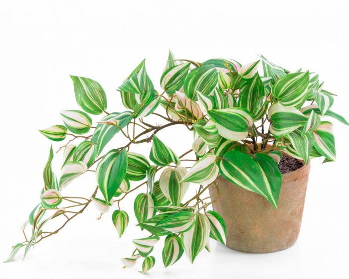 - liście Tradescantia są zielone . Podczas uprawy różnorodnych form należy upewnić się, że kwiat ma wystarczającą ilość światła, w przeciwnym razie jego liście staną się zielone.