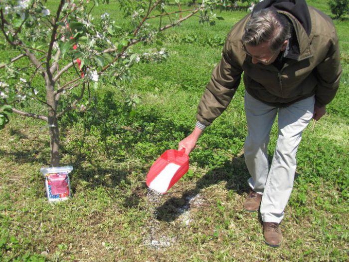 ponieważ na tym drzewie powstaje bardzo duża liczba jabłek, pochłania ona wiele składników odżywczych z gleby. W związku z tym taką roślinę należy nawozić przez cały okres intensywnego wzrostu. Wiosną do gleby należy dodać nawozy organiczne. Aby to zrobić, użyj zarówno sfermentowanych odchodów kurczaka, jak i gnojowicy. Aby drzewo otrzymało wymaganą ilość azotu, można go spryskać roztworem mocznika (7%), ale należy to zrobić na początku okresu wiosennego, zanim pąki zaczną się otwierać. Następnie, przed rozpoczęciem drugiej połowy okresu letniego, w razie potrzeby, rośliny można karmić jeszcze 2 razy metodą dolistną i stosować również roztwór mocznika (0,1%).