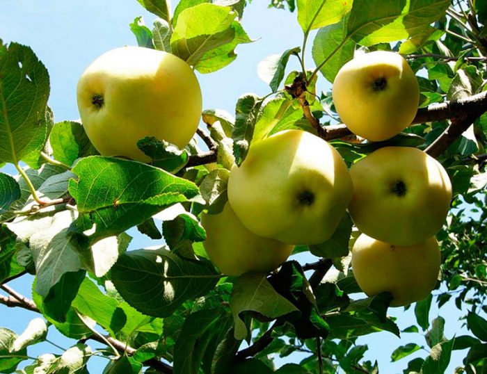 średnia odmiana wyróżnia się wydajnością i odpornością na mróz, szkodniki i choroby. Bogate żółte jabłka nie mają bardzo dużego rozmiaru, ale są dość soczyste. Kształt jabłek jest płaski.