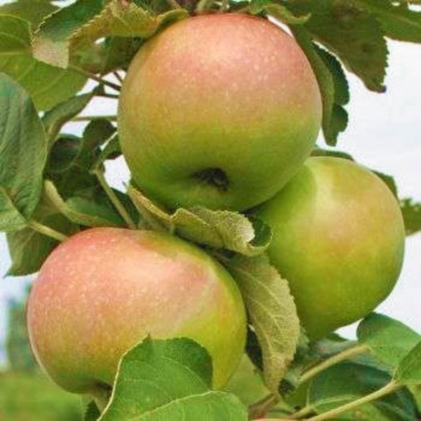 średnia odmiana wyróżnia się wydajnością i odpornością na mróz. Duże zielonkawo-żółte jabłka mają rumieniec. Drobnoziarnisty pachnący miąższ jest soczysty i słodko-kwaśny.