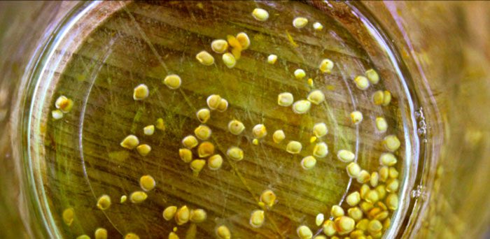 zrozum, gdzie są puste nasiona, a gdzie nie, możesz przeprowadzić specjalną procedurę. Aby to zrobić, wlej roztwór soli do małego pojemnika (na litr wody pobiera się 30 gramów soli). Następnie nasiona będą musiały zostać wylane do tego płynu. Odczekaj 5-7 minut, a następnie usuń nasiona, które pozostały na powierzchni, to one są puste. Te nasiona, które utonęły, należy wyciągnąć z wody, dokładnie spłukać, a następnie wysuszyć.