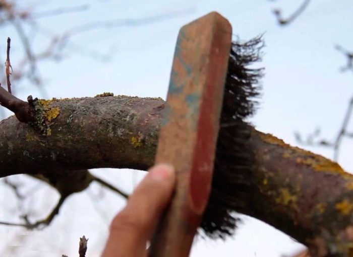 należy szczególnie uważać na wybielanie starych drzew. Wybielanie spada na nich stosunkowo słabo, ponieważ na starej korze występuje wiele nierówności, pęknięć. W związku z tym, zanim wybielisz drzewo, musisz wyczyścić jego pień, do tego potrzebujesz szczotek, a także skrobaków. Jednak często zaleca się tę procedurę za pomocą prostych szmacianych rękawiczek, ponieważ nie są one w stanie poważnie uszkodzić pnia drzewa, w przeciwieństwie do szczotek i skrobaków. Jeśli zdecydujesz się na czyszczenie za pomocą skrobaka, pamiętaj, że należy to zrobić, zachowując szczególną ostrożność, ponieważ drewno można łatwo zranić.