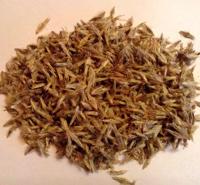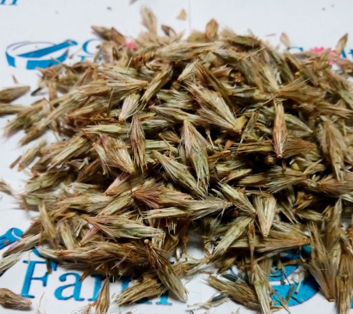 zerwane kwiatostany są dobrze wysuszone, rozłożone w suchym, wentylowanym pomieszczeniu. Suszone kwiaty i nasiona układa się w workach z papieru, po oczyszczeniu z Sory. Do przechowywania surowce są usuwane w ciepłym i suchym miejscu. Przechowują go nie dłużej niż dwa lata.