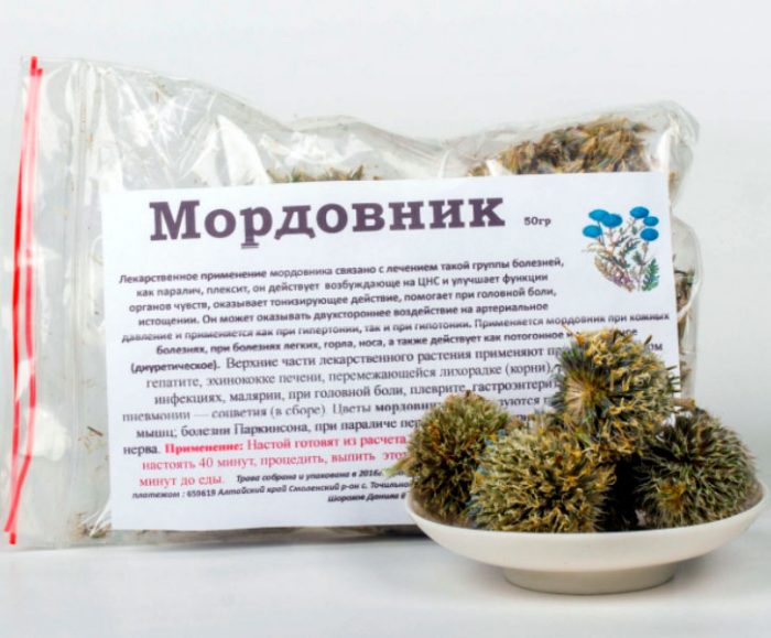 kompozycja takiej rośliny zawiera dużo echinopsyny. Pomimo faktu, że substancja ta jest trująca, przy prawidłowym dawkowaniu ma silny efekt leczniczy. Leki wytwarzane na bazie echinopsyny są stosowane w leczeniu dotkniętych obszarów układu nerwowego. Ponadto substancja ta jest stosowana w zaburzeniach rdzenia kręgowego, niedociśnieniu, atrofii, skaleczeniach i porażeniach nerwowo-mięśniowych. Ponadto eksperci udowodnili skuteczność echinopsyny podczas terapii zaniku nerwu wzrokowego.