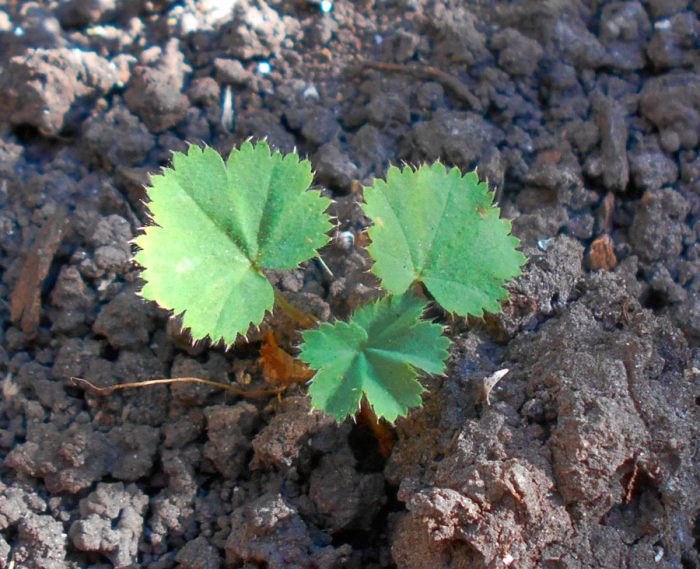 wiosną przenieś uprawy do dobrze oświetlonego i ciepłego miejsca. Ponieważ w okresie zimowym nasiona przeszły naturalną stratyfikację, sadzonki pojawiają się stosunkowo szybko. Po uformowaniu od 2 do 4 prawdziwych blaszek liściowych należy je rozłożyć na poszczególnych doniczkach torfowych. Sadzenie sadzonek mankietu na otwartym terenie odbywa się wiosną po ustaleniu ciepłej pogody (czasami zdarza się to w ostatnich dniach kwietnia). Krzewy zadowolą się kwitnieniem już w pierwszym roku wzrostu.