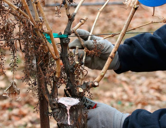 przycięte krzewy muszą być traktowane w celach profilaktycznych przed różnymi chorobami. Z reguły stosuje się do tego roztwór siarczanu żelaza lub miedzi (3-5%). Do przetwarzania winogron wybiera się bezwietrzny, pogodny dzień, podczas gdy nie powinno być chłodniej niż 5 stopni, w przeciwnym razie nie będzie odpowiedniego efektu opryskiwania krzewów pestycydami.