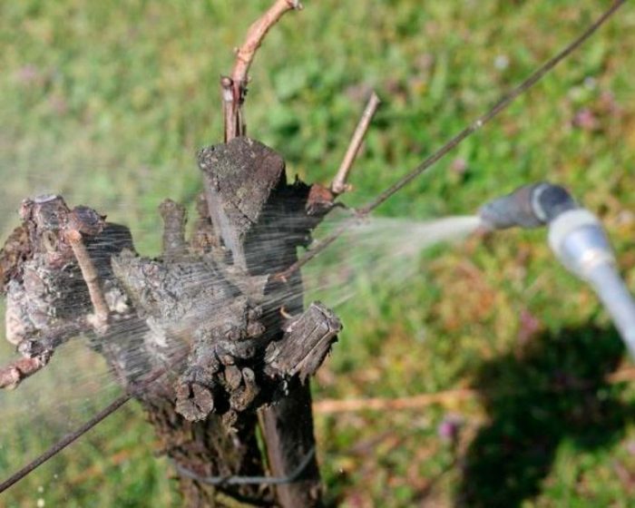 po zakończeniu zbiorów wymagane jest profilaktyczne traktowanie wszystkich krzewów winogron. Pomoże to chronić je zarówno przed różnymi chorobami, jak i szkodnikami. Ponieważ wszystkie jagody są już zebrane, do opryskiwania kultury można użyć specjalnych silnych pestycydów. Z reguły krzaki są spryskiwane tuż przed ich schronieniem na zimę. Po przycięciu łodygi są wiązane, a następnie poddawane obróbce roztworem siarczanu żelaza (5-7%), do jego przygotowania w 1 litrze wody dodaje się od 50 do 70 g produktu. Lek ten pomaga chronić roślinę przed wieloma chorobami i szkodnikami, ale jest całkowicie nieszkodliwy dla oidium i roztoczy, w tym przypadku zaleca się stosowanie siarki koloidalnej lub Tiovitu. Rovicurt pomoże pozbyć się pęczków liści, a do zwalczania cercosporozy zaleca się stosowanie Polichomu lub Fundazolu.