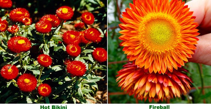 - Hot Bikini . Wysokość rozgałęzionych łodyg wynosi około 0,3 m. szerokość szkarłatnych kwiatostanów wynosi około 20 mm.