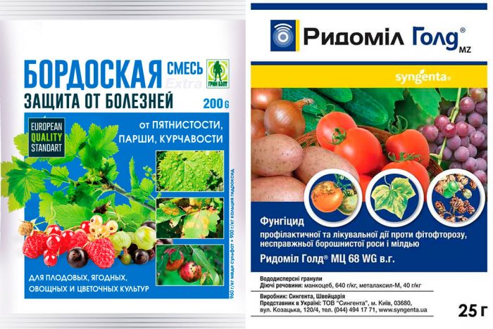 - Ridomil Gold , Tatuaż , Oksihom i Ordan . Są to środki grzybobójcze o działaniu kontaktowym i ogólnoustrojowym.