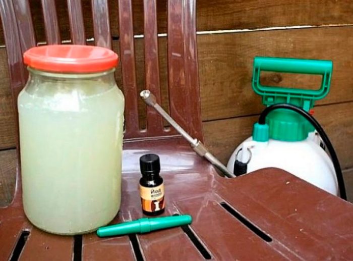 wiadro wody łączy się z 1 litrem kefiru (fermentowanego przez 2 dni) lub jogurtem, traktuj Krzaki mieszanką. Pierwsze opryskiwanie taką kompozycją można wykonać 15 dni po przesadzeniu sadzonek do łóżka.