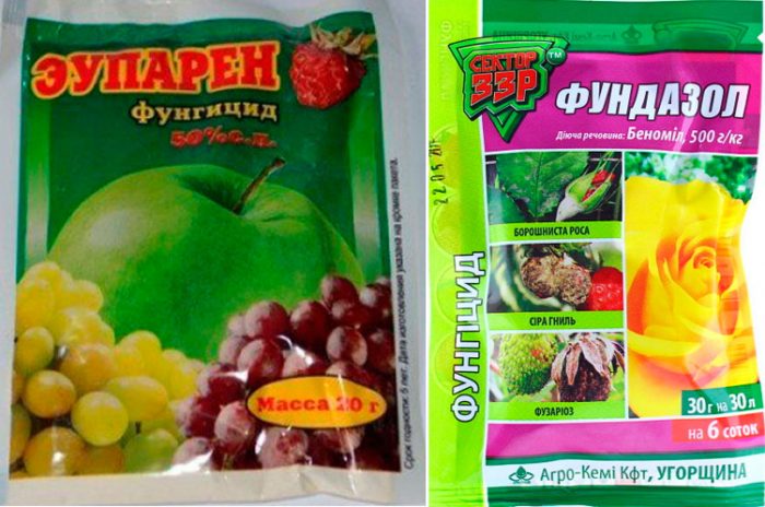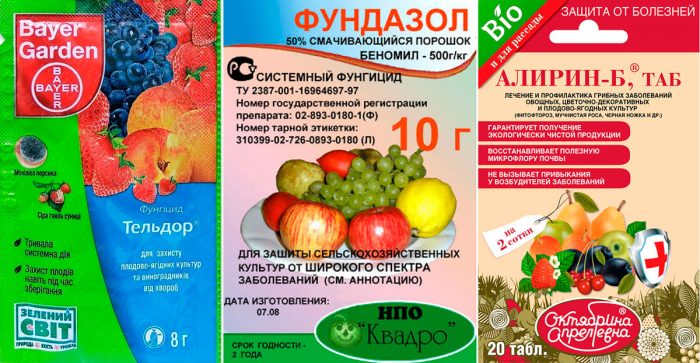 - Fundazol . Systemowy środek o szerokim spektrum działania, rośliny są spryskiwane nie więcej niż 2 razy w sezonie, w przeciwnym razie rośliny rozwijają odporność. Środek jest niebezpieczny dla zwierząt i ludzi.