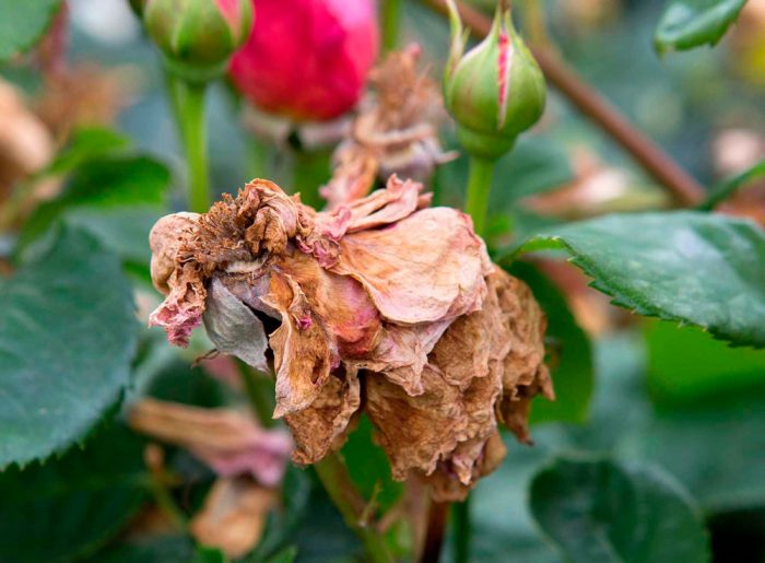 - Regularnie sprawdzaj krzewy i usuwaj dotknięte chorobą kwiaty i płytki liściowe;