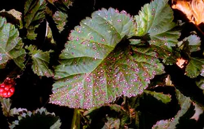 maliny są również podatne na septoriozę, aw tym przypadku czynnikiem sprawczym jest Septoria rubi. U chorego krzewu na liściach pojawiają się brązowe plamy o zaokrąglonym kształcie, które osiągają średnicę od 0,2 do 0,3 cm, w miarę rozwoju choroby stają się białe. Jeśli nie walczysz z białą plamą, jesienią na powierzchni łodyg można znaleźć duże brązowe plamy, które z czasem stają się białe, a także pękają. Choroba ta negatywnie wpływa na zimotrwalość rośliny. A wraz z nadejściem wiosny zaczyna się rozwijać bardziej aktywnie. W rezultacie liście latają z krzaków przed terminem, a na nich powstaje mniejsza liczba owoców.