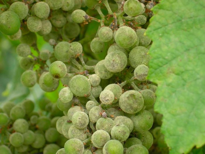 oidium to choroba grzybicza, na którą narażone są winogrona. Ta choroba w innych kulturach jest znana jako mączniak prawdziwy (nie mylić z peronosporozą, mączniakiem rzekomym) lub popiołem. Czynnikiem sprawczym takiej choroby jest Oidium Tuckeri Berk, do Europy trafił z Ameryki Północnej i po raz pierwszy odkrył go w 1845 r. ogrodnik Tooker w Anglii. Po zaledwie 5 latach oidium rozprzestrzeniło się już na całym terytorium europejskim. Ta choroba wyrządziła szczególne szkody winnicom Francji, zostały one uratowane tylko dlatego, że znaleziono wysoce skuteczny środek w walce z oidium ― jest to siarka.