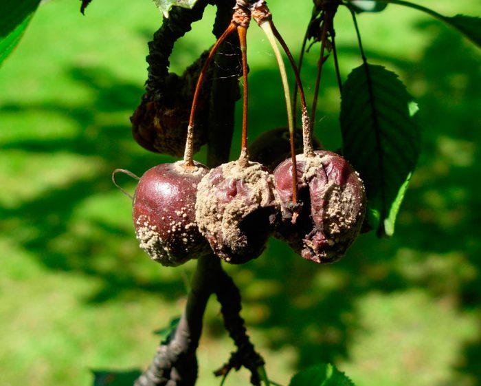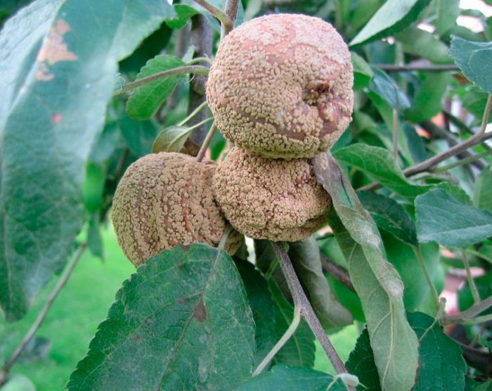 - zimą chore owoce nie powinny pozostać na gałęziach drzewa. Są one odcinane i niszczone wraz z odciętymi łodygami i gałęziami dotkniętymi chorobą.