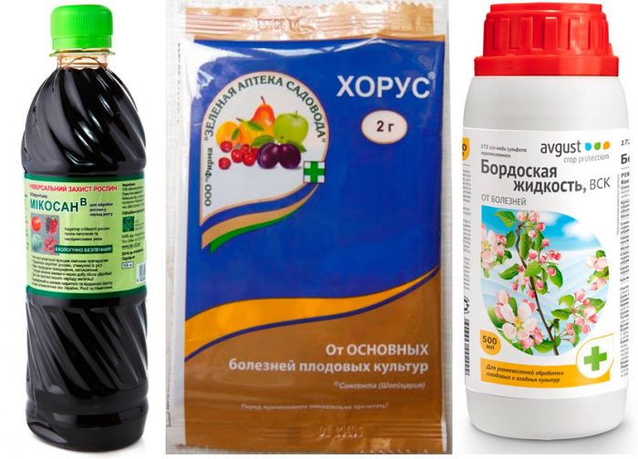 również jednym z głównych środków zapobiegawczych są regularne zabiegi specjalnymi preparatami chemicznymi, które są przeprowadzane przed kwitnieniem. Do przetwarzania roślin na liściach stosuje się roztwory takich środków, jak Mycosan-B, Horus, płyn Bordeaux (1%), można również stosować inne preparaty grzybobójcze, które obejmują miedź. Powtarzające się opryskiwanie profilaktyczne przeprowadza się natychmiast po kwitnieniu drzewa, a następnie leczenie preparatem grzybobójczym przeprowadza się w lipcu 1 lub 2 razy. Jesienią po zbiorach rośliny są również spryskiwane 1 lub 2 razy środkami zawierającymi miedź.