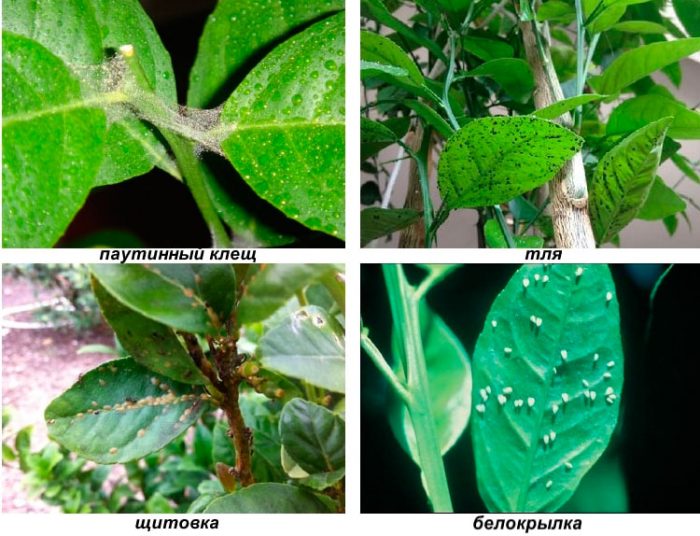 oprócz przędziorków mszyce, łuski, mączliki lub wełnowce mogą osiedlić się na drzewie cytrynowym. Aby pozbyć się takich szkodliwych owadów, często stosuje się napar czosnkowy. Aby go przygotować, połącz 1 litr czystej wody i od 150 do 170 g drobno posiekanych ząbków czosnku. Pojemnik jest szczelnie zamknięty, a mieszaninę pozostawia się na 5 dni. Następnie infuzję filtruje się i rozcieńcza wodą: na 1 litrze wody 6 mg produktu. Muszą spryskać drzewo. Jednak taki napar może pomóc tylko wtedy, gdy na roślinie jest niewiele szkodników. Przy dużym nagromadzeniu szkodników do ich zniszczenia stosuje się roztwór leku owadobójczego.