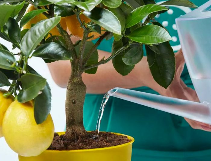 domowa cytryna od maja do wczesnej jesieni powinna być podlewana codziennie. Zwilż mieszankę gleby w innym czasie około 1 raz na 3-4 dni. Podczas podlewania mieszanina gleby powinna być dobrze nasycona wilgocią, a przed następnym zwilżeniem jej powierzchnia powinna lekko wyschnąć.