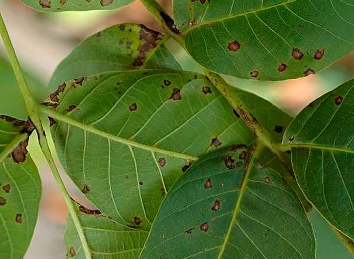 brązowe plamienie na orzechu, zwane również marsoniozą, wpływa zarówno na łodygi, jak i liście. Choroba aktywuje się przy silnym wzroście poziomu wilgotności powietrza, który obserwuje się podczas długotrwałych opadów deszczu. Największe niebezpieczeństwo stwarza podczas kwitnienia, ponieważ w tym czasie choroba może zniszczyć prawie wszystkie kwiaty. Plamienie może również wpływać na owoce tej rośliny.